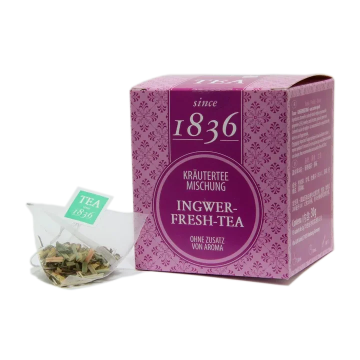 Tisana Ginger Fresh è una miscela dal gusto e aroma estremamente fresco e intenso. L'abbinamento degli ingredienti creano una tisana particolarmente apprezzata per il suo gusto particolare ed anche per gli effetti benefici dello zenzero.