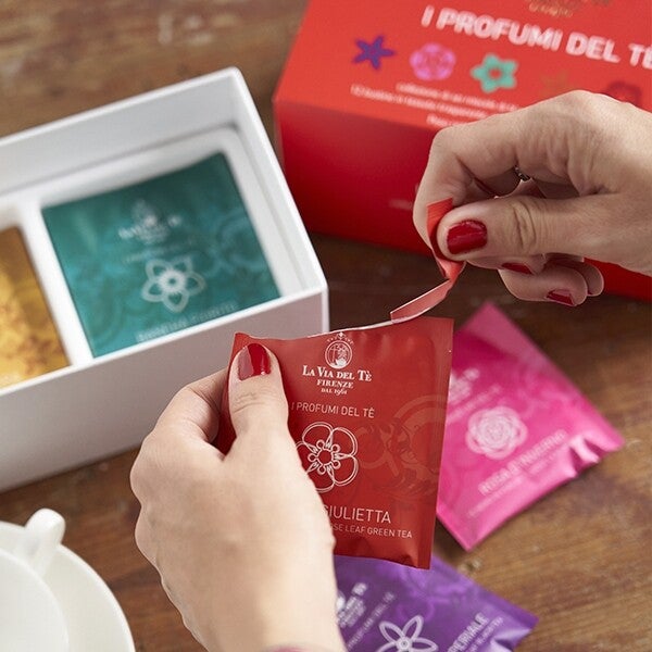 Confezione assortita di 12 filtri trasparenti in PLA (ricavato dal mais). Filtro, filo e talloncino: interamente biodegradabili Le miscele della collezione I Profumi del Tè, in pratici filtri monodose, in un cofanetto regalo elegante, perfetto per gli amanti delle miscele profumate: tè verde Romeo e Giulietta; tè verde Marrakech Mint Tea; tè nero Fior di Zagara; tè nero Rosa d'inverno; tè nero Earl Grey Imperiale; tè verde Bancha Fiorito.