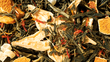 Tè verde (60 %), tè bianco Pai Mu Tan, citronella, pezzetti di mela, pezzetti di mela liofilizzata, spicchi di arancia, fiocchi di mango, fiocchi di papaya, aroma
