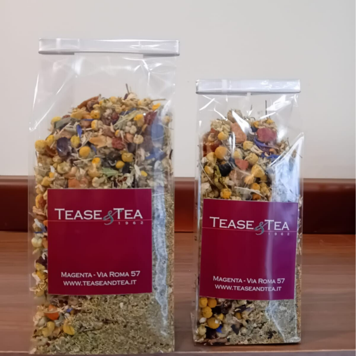 Foglie di mora, menta, melissa, camomilla, foglie di fragoline di bosco, citronella, fiori di lavanda, petali di rosa, petali di calendula.