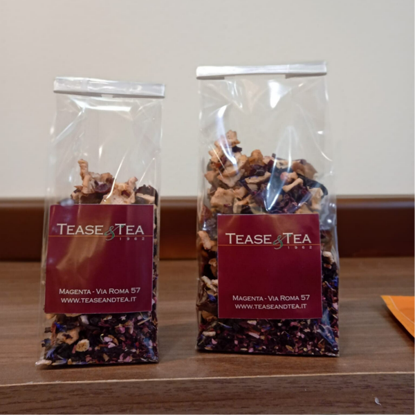 Coccole di sambuco, petali di ibisco, ribes nero, aroma, more intere liofilizzate, lamponi interi liofilizzati, pezzetti di fragola liofilizzata.