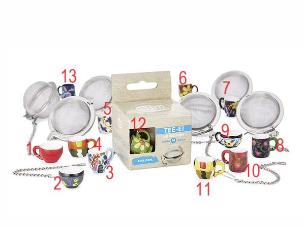 Classico infusore da tè a pallina in acciaio inox con ciondolo. In scatola