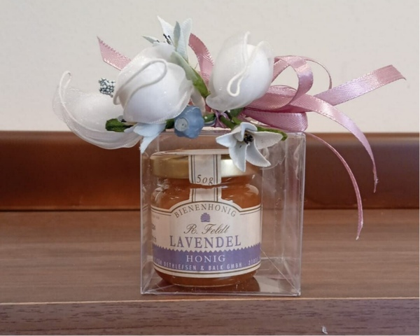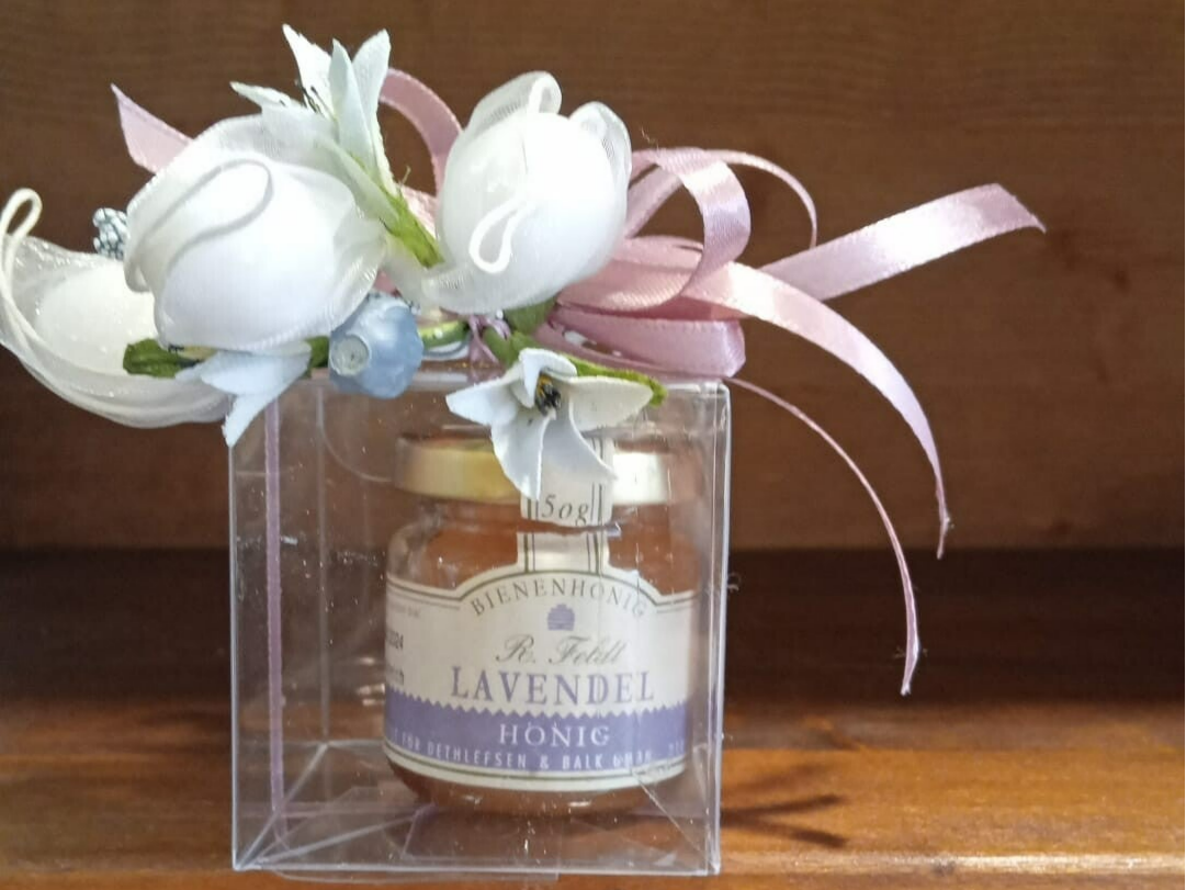 Bomboniera con vasetto da 100 gr di miele alla lavanda