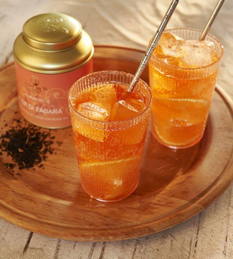 Preparare il tè Fior di Zagara forte, lasciandolo in infusione per 4 minuti. Aggiungere lo zucchero di canna in un bicchiere di vetro termoresistente, riempire per 1/3 di Rhum scuro e versare il tè a bollore per i restanti 2/3.
